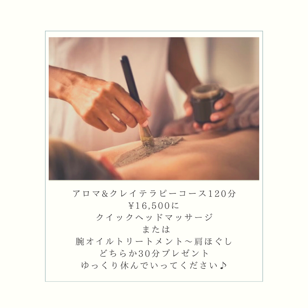120分アロマ&クレイテラピーコース ¥16,500 ご予約の方に